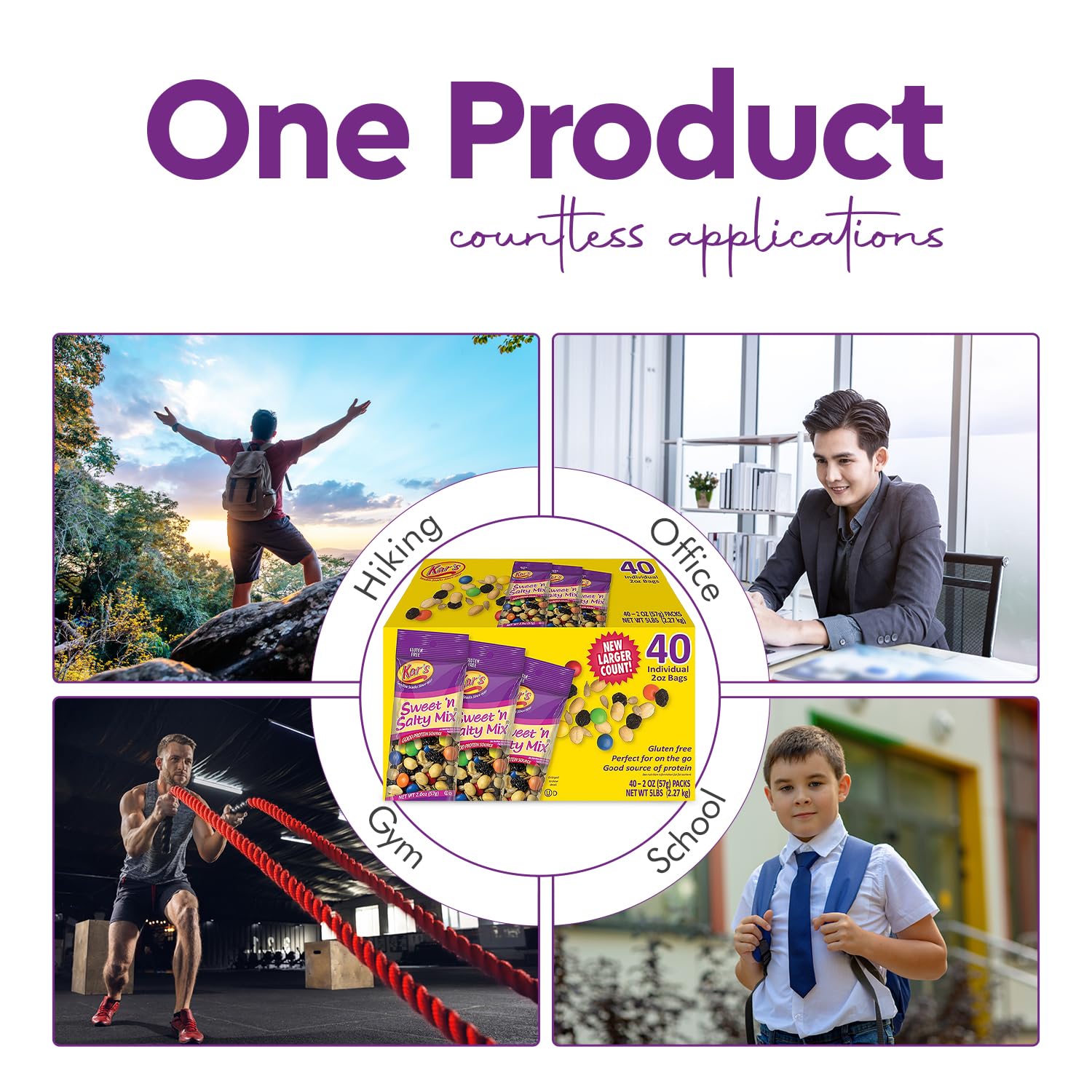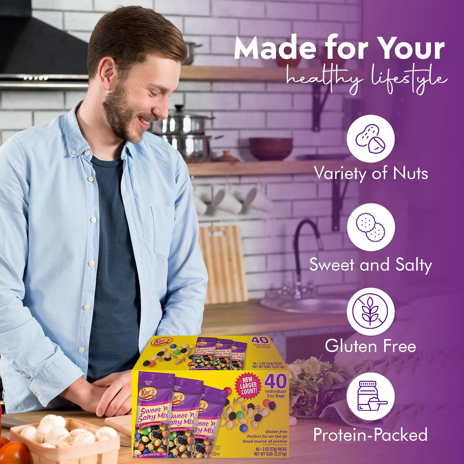 Kar’s Sweet and Salty Trail Mix – 40-Pack Trail Mix Individual Packs 2oz – Gluten-Free Trail Mix Bulk – Rich Source of Protein – Sweet and Salty Snacks with Mixed Nuts and Chocolate Candies